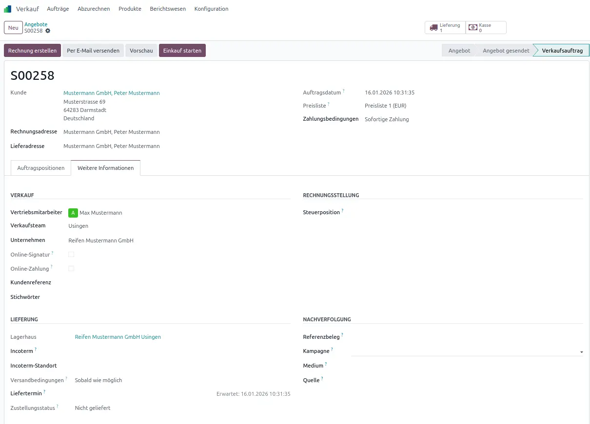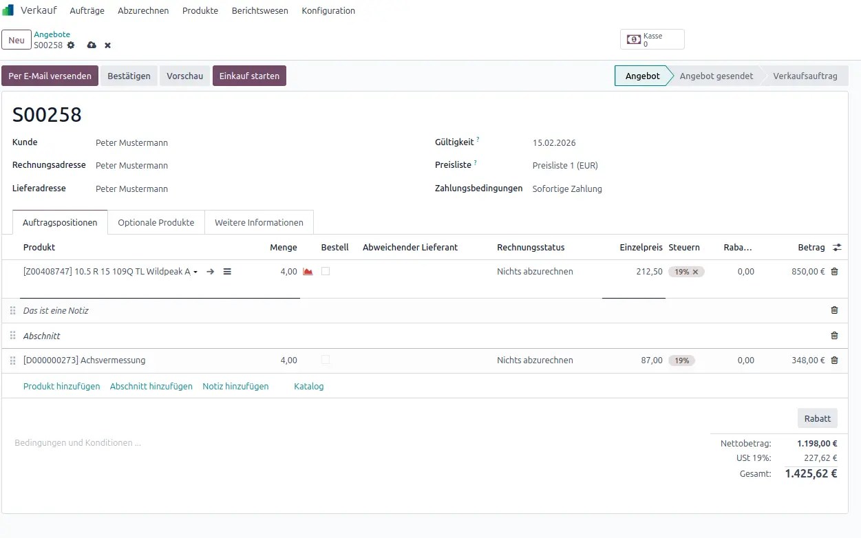 - Angebot senden oder direkt bestätigen; Termine anlegen.