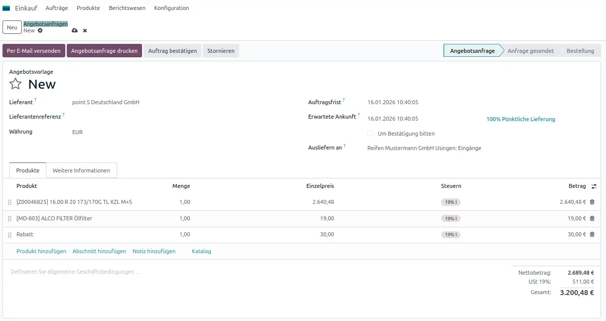 Einkauf Neue Angebotsanfrage