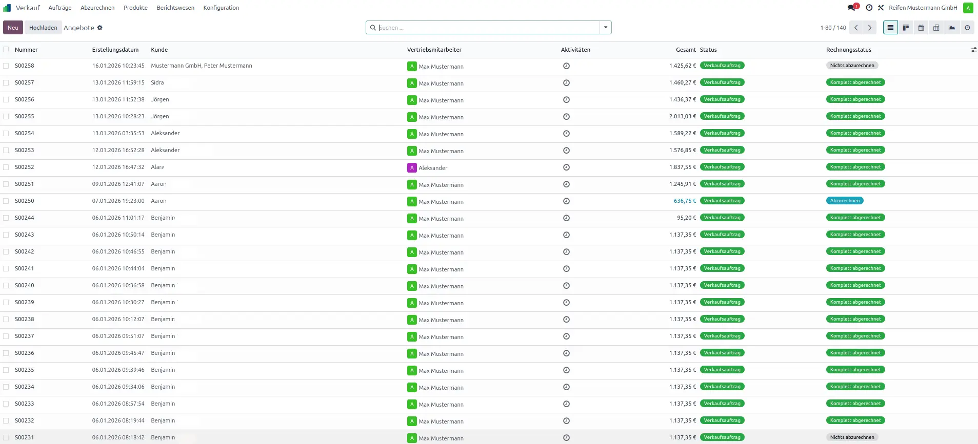 Verkauf Angebote Übersicht