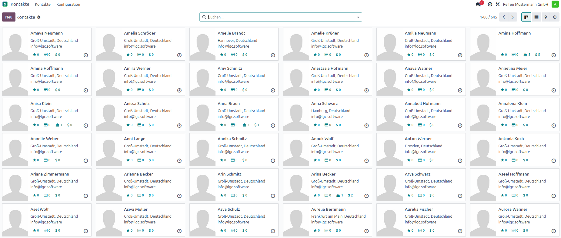 Kontakte Kanban Übersicht