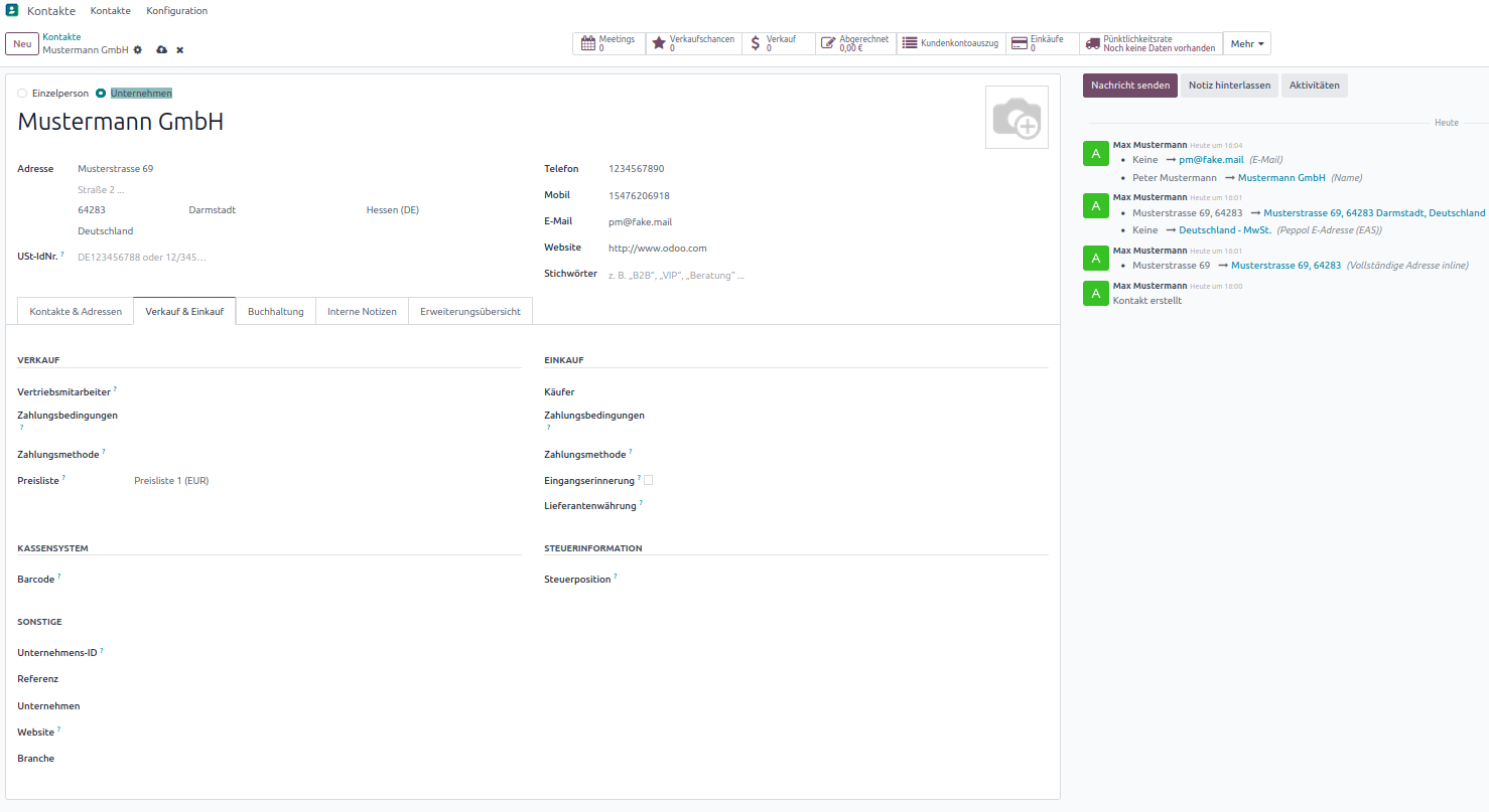 - Strukturierte Kontaktfelder inkl. Adresse, Kommunikation, Steuernummern und Rollen.