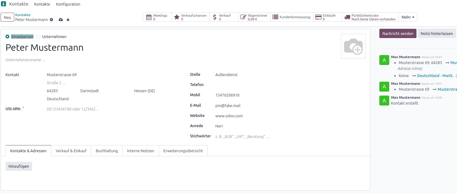 Neuer Kontakt Einzelperson